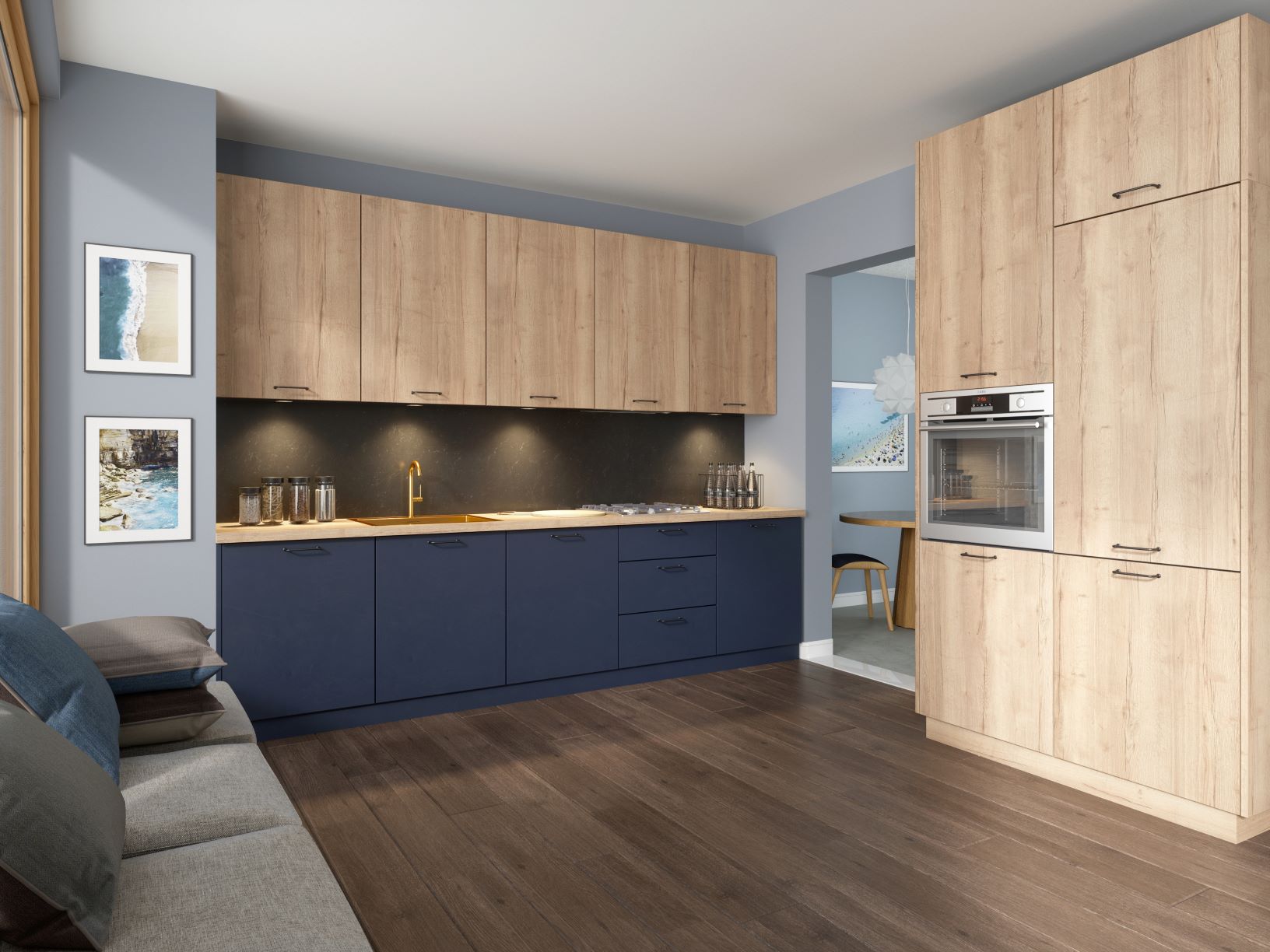 Subtelna I bardzo kobieca lub surowa, chłodna i minimalistyczna.Szeroka linia frontów pozwala na stworzenie dowolnej zabudowy kuchennej.